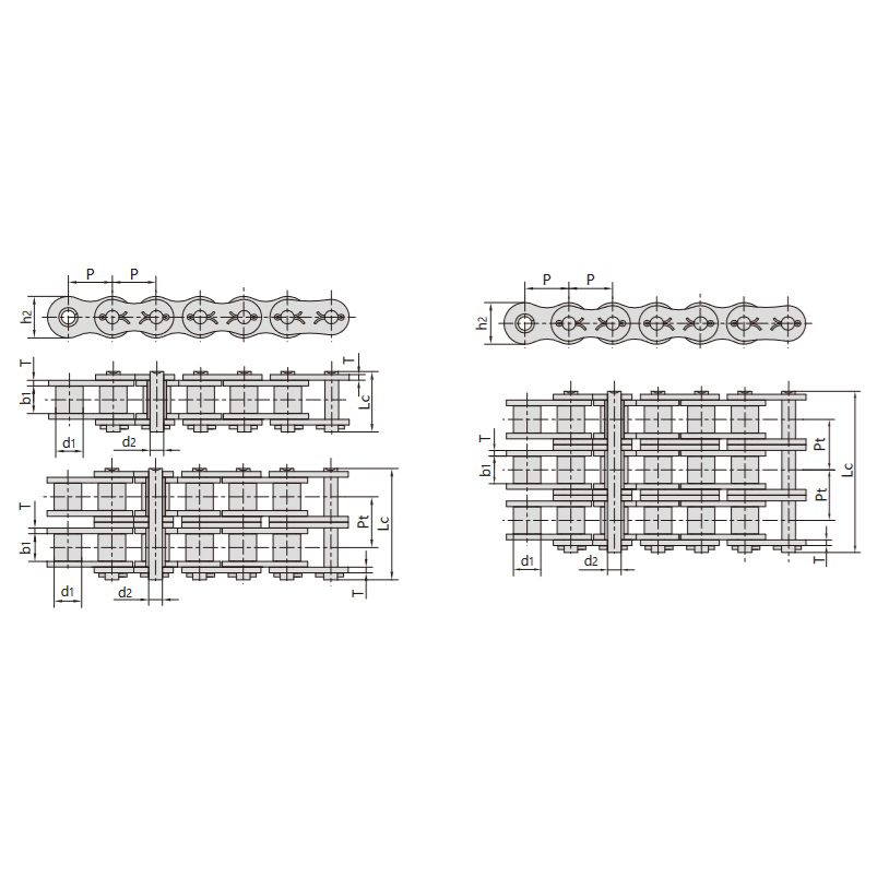 • Эффективность передачи:Оптимизированная конструкция роликов и звеньев для плавной и энергоэффективной передачи мощности.