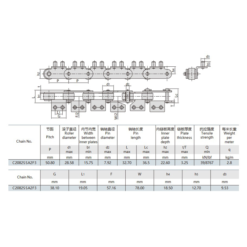 - Стабильная и эффективная работа:Оптимизированная звездочка и опорная конструкция обеспечивают стабильное движение цепи при высоких нагрузках и высокой скорости.
