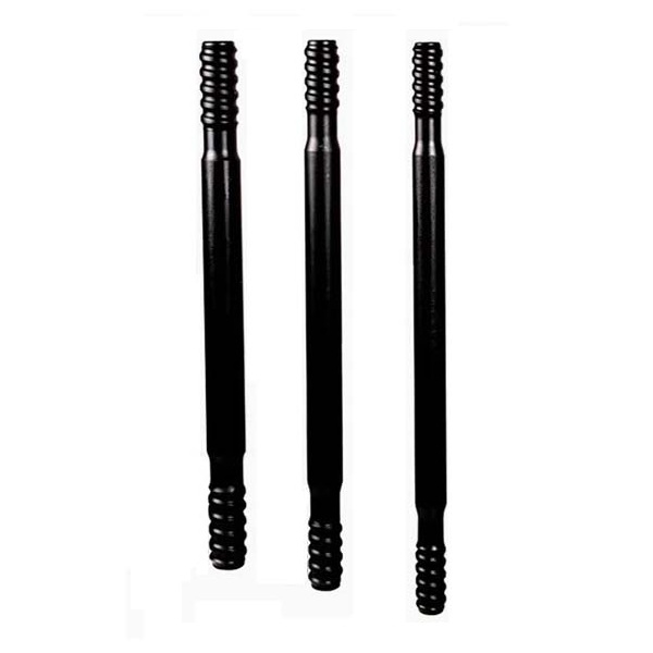 Круглая удлинительная штанга передает усилие поршня перфоратора на породу. Один конец штанги соединяется с муфтой или переходником, а другой — с резьбовой буровой штангой.