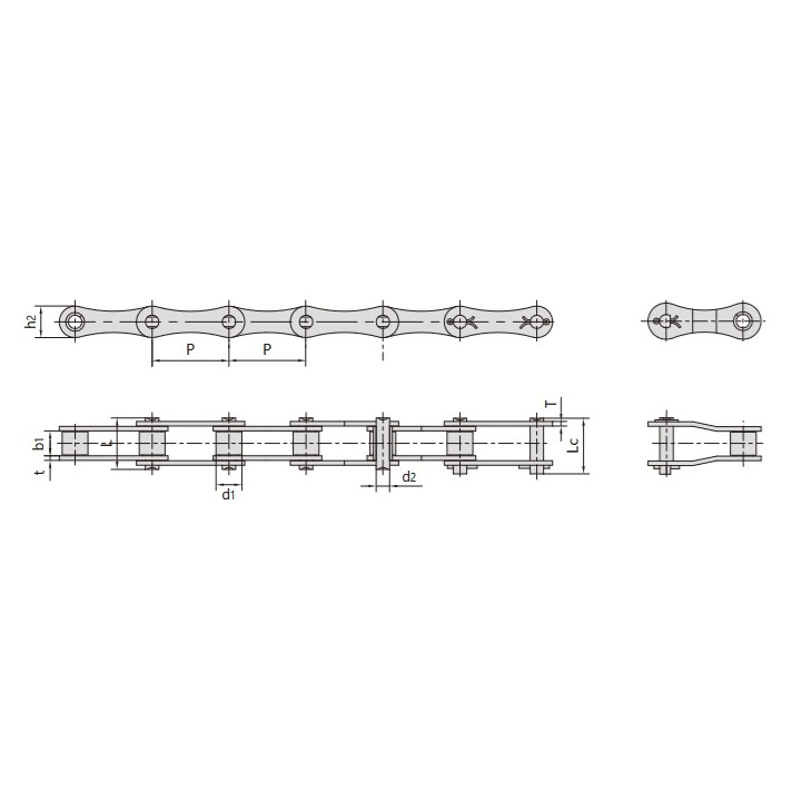 - Конструкция с двойным шагом:Шаг цепи в два раза больше, чем у стандартных роликовых цепей с коротким шагом, что делает ее более легкой при сохранении прочности. Идеально подходит для транспортировки на большие расстояния, низких скоростей и больших расстояний между центрами передачи.